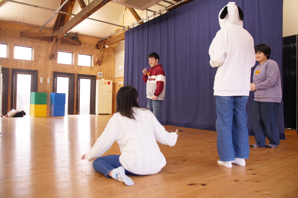 2026年最初であり、今年度最後のひょっこりシアター体験ワークショップがありました。といってもいつもと変わらず、「今日は何する?」とみんなの調子を確認しながらゆったりと、ひょっこり時間が始まりました。