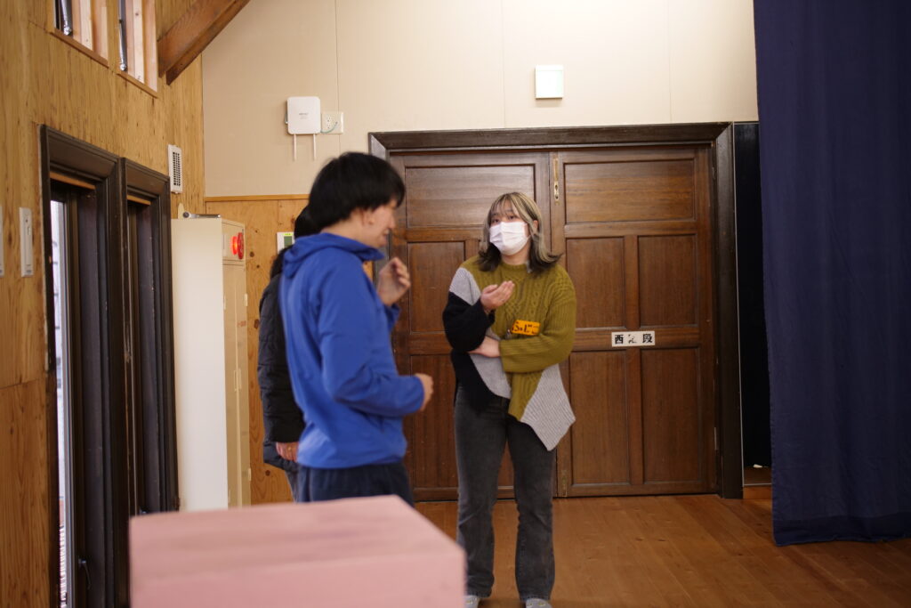 前半は、ジェスチャーゲームや、ジェスチャー伝言ゲームをしました。それぞれのお題には、餅つきや虫取り、バドミントンや絵を描く、神社など最近の出来事やみんなの日常がでてきて日記を読んでいるようで楽しい時間でした。