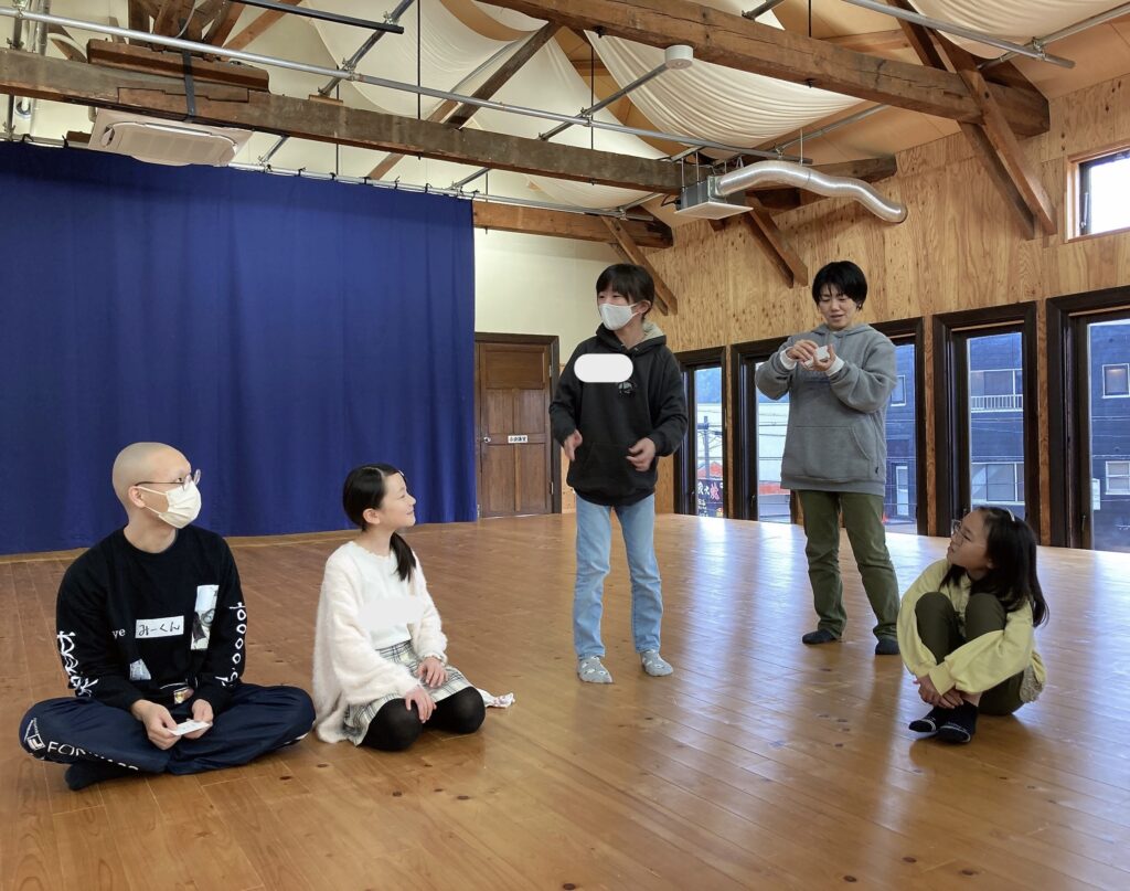 同じ場面が続くのではなく、どんどん新しい話題に進んでお客さんをまったく飽きさせません。今回の創作では「これだとまだ普通だ」「もっと動きがあったほうがいい」というまるでプロの現場のような言葉も聞こえてきて、演劇に対する熱意が強まっていることが伝わります。楽しくて真剣なみんなの創作をこれからも見守っていきたいと思います。