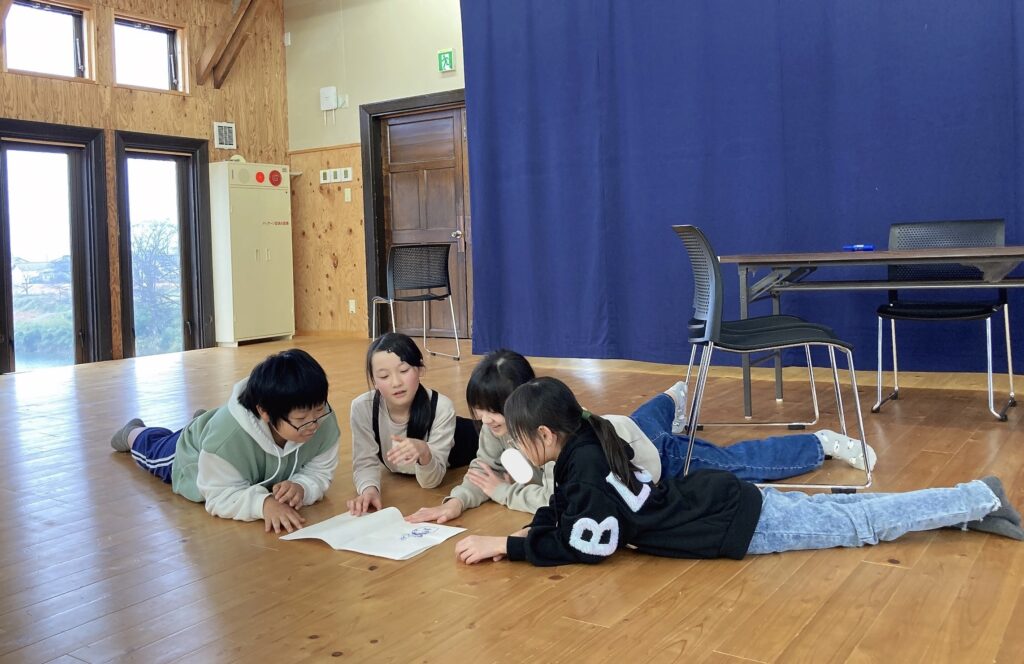 これまでの活動では村井ちゃんから渡されたお題から劇を作っていましたが、今日はなんと、作り方はフリー。3つのチームに分かれて、まずどんな劇を作りたいかから話し合い、お話の骨組みを考えていきます。