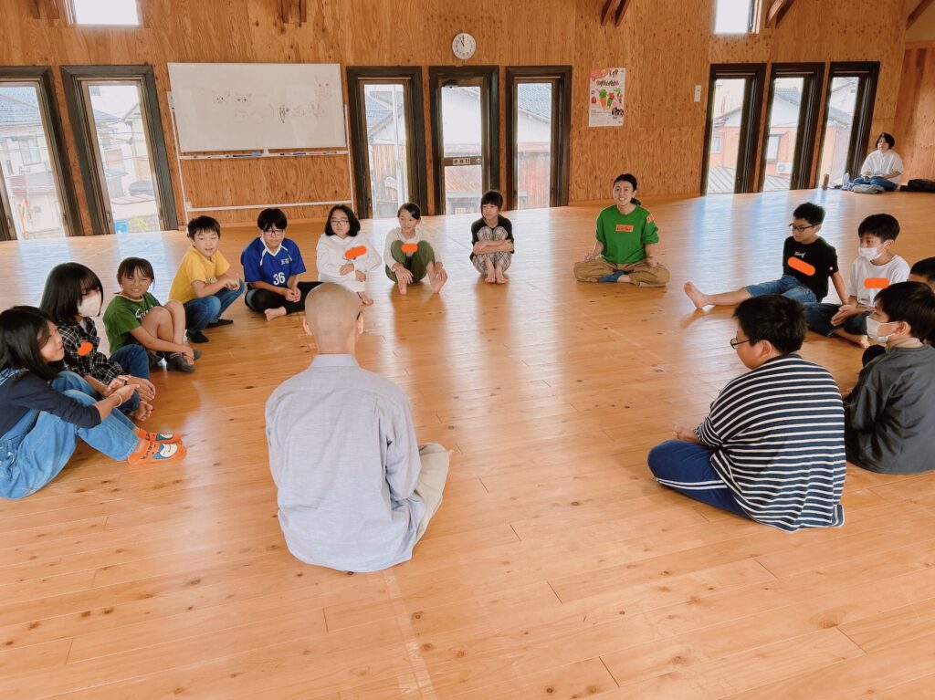 2023年10月7日、たじま児童劇団3回目の活動日でした。今回の参加者は13人。活動開始時間までサッカーやドッチボールをしながらまち、人が増えるにつれ次第に賑やかになっていきました。ドッチボールの興奮冷めやらぬまま、第4回目の活動がスタート。はじめに二つのアイスブレイクを行いました。