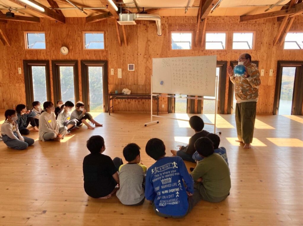 11月12日(土)、今日の児童劇団小学生の部の講師はむらいちゃんに代わり、現在青年団『サンタクロース会議』の上演のために江原に滞在している俳優の「まーぷー」こと島田曜蔵さんが務めました!まーぷーは昨年もこの時期にゲスト講師として小学生の部に来てくれていて、今年もまた新しいプログラムでみんなと遊びに来てくれました!![]()