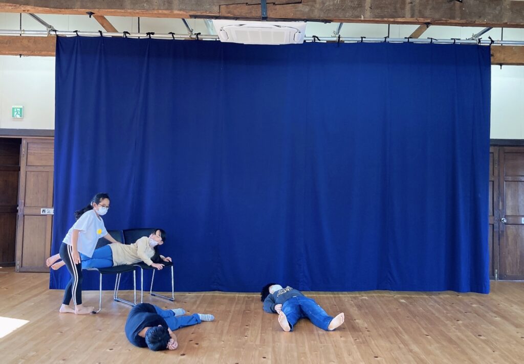 まずは自分のお腹を見たり触ったりしながら、「腹式呼吸」が一体どんな呼吸なのかを体感してみます。他にも、発声練習のための五十音の並び替えを教わったり、色んなテキストを「母音法」で喋ってみたりしました。年明けには劇場での発表会も控えているみんな。そんなみんなのために、まーぷーから、たくさんの人に届く大きな声を出してものどを痛めたり、息が苦しくなったりしないためにできることを伝授してもらったのでした。