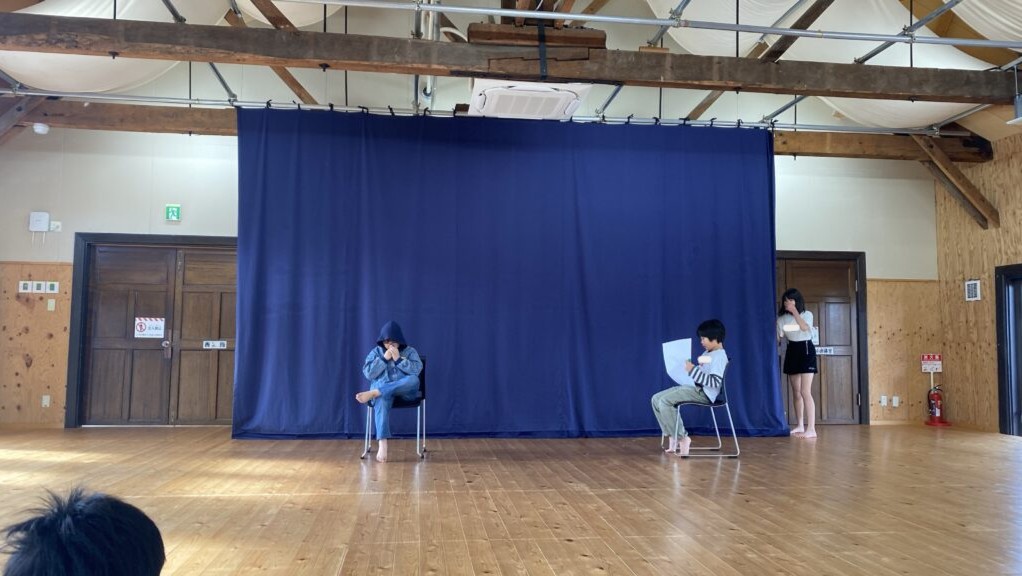 今日の創作は、「場所」と「何をする」からテーマを決め、チームでお話を作りました。さらに、物語の中に“歌”または“ダンス”を必ず入れるという条件も追加されました。テーマの内容は、まず全員でたくさん意見を出し合い、その後あみだくじで組み合わせを決定しました。