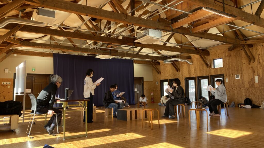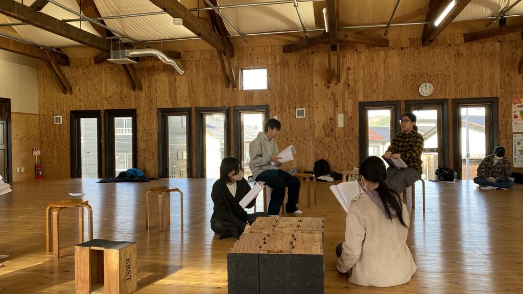 そんな稽古を過ごしてるメンバー達は各々考えながら対応し、高い集中力で取り組んでいます。次にオリザさんの稽古のある12月24日までには台本を持たなくてもできるようにと指示があり、増々本番に向けてプレッシャーが高まってきました。
